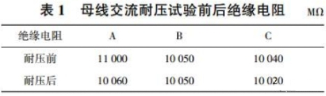 從耐壓實驗進程和表1絕緣電阻數據來看,該35kV 充氣柜母線耐壓實驗合格。